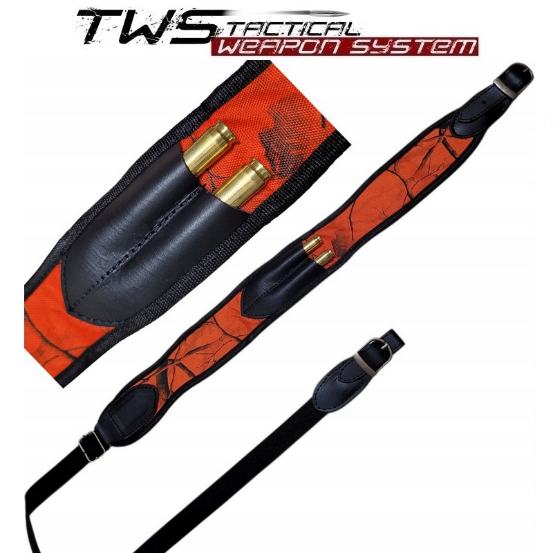 Antypoślizgowy pas do broni myśliwskiej pomarańczowy kamufarz z ładownicą na dwa naboje