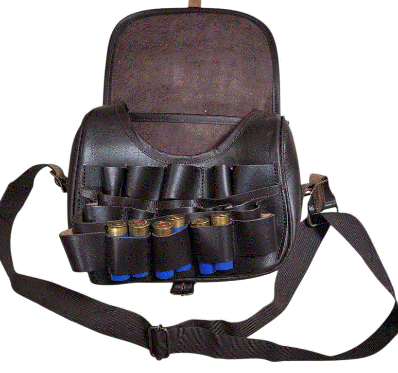 Dzięki regulowanemu pasowi torbę można nosić na ramieniu lub przez ramię. Skórzana konstrukcja zapewnia długą żywotność, a przemyślany układ uchwytów pozwala na szybkie i wygodne korzystanie z amunicji oraz zawieszanie dodatkowych troków lub akcesoriów. UWAGA zaleca się umieszczanie amunicji wewnątrz torby – zapobiega to zaginięciu lub podszyć kieszeń główną od spodu by naboje nie wypadły